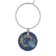 Gold Sparkle and Blue Leaf Monogram Add Your Name Wine Charm