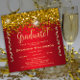 Gold Sparkles Glitter Red Graduation Party Invitation