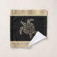 A golden spiral turtle with small gold circles in a mosaic pattern on a black backdrop for contrast combining a golden illuminating edging to tie it all in. Stylish, sleek vibes.