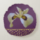 Gold Splashes and Cream Siberian Iris on Purple Round Pillow