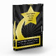 Custom personalized acrylic award plaque is easily customized online and features a black background with an image of a gold star and wave shape. Great for businesses, conferences, corporations, employee of the month award or any desired purpose. Stylish, handsome and classy.