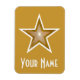 Modern design with a "shining" gold and white star on a dark yellow background. Fridge magnet with a customizable design for you to personalise with your own text, images and ideas. Please note that this is a printed image created using original photographs and digital techniques, it does not shine or contain real sparkles.
