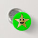 This pin back button features an illustration of a gold colored star with a cheerful smiling face an eyes set against a vivid green background. It can be an award presented to a child for classroom merit.