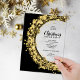 Gold star wreath on a black background surrounds your party information in chic lettering on these clear ACRYLIC Christmas holiday party invitations, perfect for your office Christmas party, or family and friends get-together. MATCHING items in our collection.
