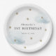This cute birthday paper plate features faux gold glitter stars and fluffy blue clouds on white background. Change the background color and personalize it for your needs. Perfect for a "Twinkle Twinkle Little Star" birthday party! You can find matching products at my store.