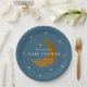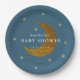 This cute baby shower paper plate features faux gold glitter stars and the crescent moon on navy blue / midnight blue background. Change the background color and personalize it for your needs. You can find matching products at my store.