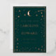 Announce your wedding in celestial style with this elegant Save the Date card. Featuring a deep forest green background with shimmering gold stars, crescent moon, and constellation details, this design is perfect for stargazers and romantic celebrations. Available with a customizable photo option, making it a truly personal keepsake.