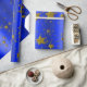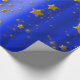 A holiday wrapping paper featuring a scattering of golden stars over a metallic blue background to add some cheer to your Christmas celebrations this year.