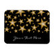 Modern design with "shining" gold and white stars on a black background. Fridge magnet with a customizable design for you to personalise with your own text, images and ideas. Please note that this is a printed image created using original photographs and digital techniques, it does not shine or contain real sparkles.