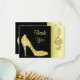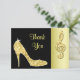Women's personalized, elegant custom Thank You cards for birthday parties with glitz and glamour. Woman's beautiful gold and black thank you card with a stunning glamorous printed image rhinestones, glitter, sequins, diamonds bling jewels sparkle high heels stilettos fashion shoe, and glittery gold treble cleft on a black and gold background. Chic, classy, cute, girly, modern thank you cards for birthday's or any other event in trendy, fashionable colors / colours. These groovy, fancy, stylish, sophisticated, pretty, girlie cards are decorated / printed on both sides. The back of this thank you card has a space for you to write your own personal thank you message. PLEASE NOTE: All products on Zazzle have flat printed images.