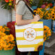 Gold Stripe and Sunflower Monogrammed Personalized Tote Bag