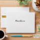 Invitation and announcement mailing envelopes with printed return address and gold foil effect stripe the back flap and inside.