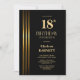 Gold Striped Black 18th Birthday Party Invitation