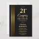 Gold Striped Black 21st Surprise Birthday Party Invitation