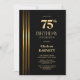 Gold Striped Black 75th Birthday Party Invitation