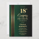 Gold Striped Black Green 18th Surprise Birthday Invitation