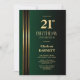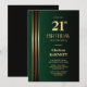 Invite your friends and loved ones to your birthday celebration with this modern gold striped black and green 21st birthday party invitation. The customizable text area in this invitation template allows you to include all the necessary details for your special birthday celebration, including the date, time, venue, and RSVP information. A variety of paper types and corner styles are available for your unique invitations, along with the option to download if you prefer a digital format.