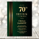 Invite your friends and loved ones to your birthday celebration with this modern gold striped black and green 70th birthday party invitation. The customizable text area in this invitation template allows you to include all the necessary details for your special birthday celebration, including the date, time, venue, and RSVP information. A variety of paper types and corner styles are available for your unique invitations, along with the option to download if you prefer a digital format.