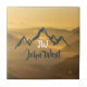 Gold sunrise personalizable mountains monogram. Vector drawn mountains in grey blue color with a personalizable monogram and your name. In te background a stunning gold sunrise with fog in the valley and sun rays. Great gift from someone who loves mountains.