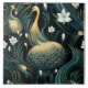 This ceramic tile features a design of gold swans in a field with white flowers and leaves. The color scheme of dark gray and light emerald creates a striking contrast. The design is influenced by ancient Chinese art, with fanciful illustrations and flowing lines. The pattern is seamless and repeatable, making it perfect for creating a continuous design on a wall or floor.