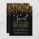 Gold & Black Sweet 16 Birthday Sparkly String Lights "Save the Date" announcement template.