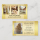 Business card featuring imagery of sweet cakes and desserts framed by an elegant gold design. You can replace all photos with your own. Beautiful for a sweet bakery or dessert catering company.