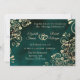 It features an emerald green background with frilly and ornate faux foil gold filigree and chic script lettering.