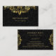 Elegant black floral damasks background with gold tones vintage swirly floral lace. Fully customizable double-sided business card template.