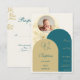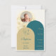 Announce your daughter's baptism with this sophisticated and beautifully designed RSVP Card. Featuring a harmonious blend of muted gold and deep teal, this design radiates elegance and grace. The delicate floral line art adds a subtle touch of nature, perfectly complementing the arched layout. A refined mix of modern serif and script fonts enhances the timeless aesthetic. The personalized photo frame at the top makes this invitation a meaningful keepsake. Ideal for baptisms, christenings, and religious ceremonies, this RSVP Card sets the perfect tone for a heartfelt celebration.