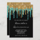 Gold Teal Glitter Drips Black Quinceañera Invitation