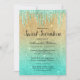 Gold teal ombre glitter drips Sweet Seventeen Invitation