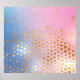 Gold texture on a gradient background. Gold honeycomb with place for text. Wedding gold background red with blue. Abstract gold line art, textures for covers, invitations. Vintage illustration.