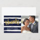 This glam thank you card features faux gold foil, hand-lettered brush script calligraphy, painted navy blue watercolor stripes, and a square photo template.