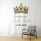 Elevate your Quinceañera celebration with this stunning customizable backdrop tapestry. Featuring a majestic gold and black crown design, this high-quality wall hanging is the perfect party decoration for a royal-themed 15th birthday.