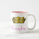 Fun ceramic mug, with graphics of shinny gold tone crowns. Pink text, along the bottom reads, I'm A Queen Everyday, and is customizable to read anything you want. Pretty mug for Her Royal Highness.