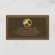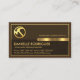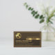An exquisite brown layered cover is encapsulated by a faux gold rectangular frame. At the top of the card is a gold hammer logo you can use with the business name resting on a gold tab. At the base lies your prestigious name, job title and the contact details.