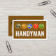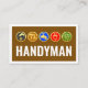 A dark brown cover is encapsulated by a white rectangular frame. The business name "HANDYMAN" (which you can change) has an array of gold handyman tools hovering above it. The gold handyman tools can represent some of the services that you offer e.g. the drill-measuring tape can represent home repairs-renovation etc.