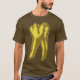 My 11 yo wore adult XL (5’7” 165#). The 8yo is small framed. She wore adult small and tied it in the back. Grandma wore adult large with long sleeve shirt underneath. Tall girl adult medium. Dark haired male adult large. Good quality dark Heather gray, Gildan brand shirt. -it was next up from basic choice and cost about $20 per shirt. Not too thick or thin. Washed and dried well, no major shrinkage. Not see-through. Can wear a bra under it fine. Screen print is just as shown and well done, front and back.