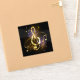 Jewelry, gold, musical treble clef with golden notes and stars on black glowing background.