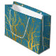 Gold Tree Branches Pattern Blue Background Large Gift Bag