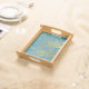 Gold Tree Branches Pattern Blue Background Serving Tray