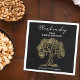 Personalized party accessory for your next family reunion with template text and a gold tree outline and text on a black background. Personalize all the text, remove the year so you can use extras for next year's reunion, or edit using the design tool to select a typeface style, size, and color.