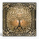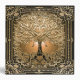 A beautiful ornate design with a gold tree of life with an ornate frame and a heart at the roots. There is a night sky background.