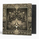A beautiful ornate design with a gold tree of life with an ornate frame and a heart at the roots. There is a night sky background.