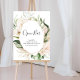 This gold tropical foliage floral wedding open bar sign is perfect for a rustic wedding. The design features hand-painted watercolor gold and tropical green foliage with elegant blush flowers.