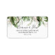This gold tropical greenery wedding RSVP address label is perfect for a destination wedding. The design features hand-painted watercolor gold and green palm and banana leaves with pink flowers neatly arranged into beautiful bouquets.