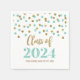 Customizable graduation napkins for class of 2024 with glamorous gold and turquoise confetti pattern.