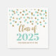 Customizable graduation napkins for class of 2025 with glamorous gold and turquoise confetti pattern.