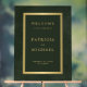 Gold typography dark green acrylic welcome sign