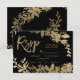 Gold typography leaf floral black rsvp wedding card